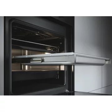 - Rails téléscopiques : ils permettent d’accéder à vos plats en les faisant coulisser en dehors de l’enceinte de cuisson en évitant les risques de basculement. Vous pourrez arroser confortablement votre rôti ou retourner facilement vos plats sans risque de brûlure.