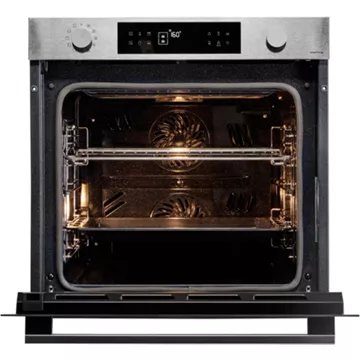 Avec sa belle couleur inox et ses doubles boutons rotatifs discrets, le four pyrolyse Samsung NV7B44503AS présente un design propre et élégant qui s’intégrera à merveille dans votre cuisine.