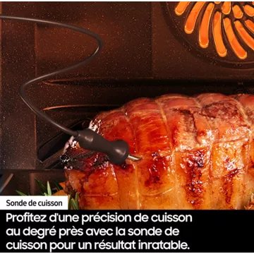 - Sonde de cuisson : la sonde de cuisson permet de surveiller la température à coeur de votre plat. Elle met fin au programme une fois la température atteinte. Vous avez la certitude de réussir vos cuissons même délicates