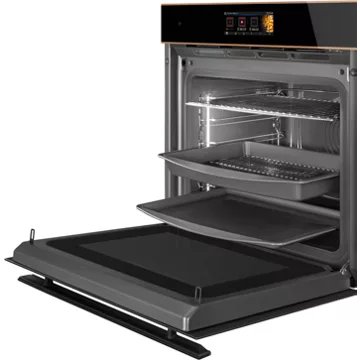- Rails téléscopiques : ils permettent d’accéder à vos plats en les faisant coulisser en dehors de l’enceinte de cuisson en évitant les risques de basculement. Vous pourrez arroser confortablement votre rôti ou retourner facilement vos plats sans risque de brûlure.