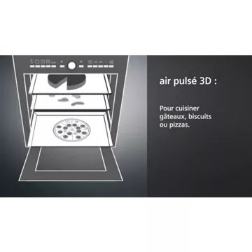 Le four encastrable SIEMENS HB554AER3F, appartenant à la gamme iQ300, est un allié de choix pour les amateurs de cuisine recherchant efficacité et facilité d’entretien. Avec ses 7 modes de cuisson, dont l’innovant air pulsé 3D Plus, il assure une répartition homogène de la chaleur sur trois niveaux, garantissant ainsi des résultats de cuisson exceptionnels pour toutes vos préparations. Le préchauffage rapide est une fonctionnalité clé qui permet d’atteindre rapidement la température désirée, optimisant ainsi le temps passé en cuisine. Côté entretien, le système ecoClean et la fonction humidClean offrent des solutions écologiques pour un nettoyage rapide et sans effort, grâce à un revêtement spécial qui décompose les graisses et un programme d’hydrolyse qui simplifie le décrassage.