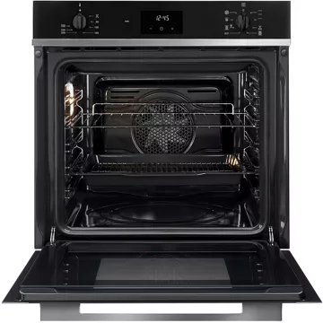 - Avantage de la chaleur tournante pulsée : le four est équipé d’un ventilateur et d’une résistance circulaire situées sur la paroi arrière du four, pour une cuisson simultanée de différents plats sur plusieurs niveaux