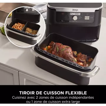 Friteuse NINJA Foodi Flex AF500EULa friteuse sans huile avec 2 compartiments qui peuvent se combiner
