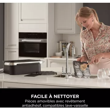 Grâce à la séparation entre 2 compartiments, vous avez aussi la possibilité de préparer 2 types d’aliments de 2 façons différentes en simultané, avec des fins de cuisson automatiquement synchronisées. Avec ce système bien pratique, la friteuse NINJA Foodi Flex AF500EU vous permettra de servir à table vos 2 plats chauds en même temps. Plus besoin de rester en cuisine pendant que vos invités se régalent.