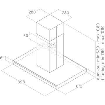 • Débit d’air maxi : 630 – idéal pour une cuisine de 25m².