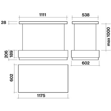 • Largeur : 117,5 cm, pour une zone de cuisson allant jusqu’à 117,5 cm de largueur.
