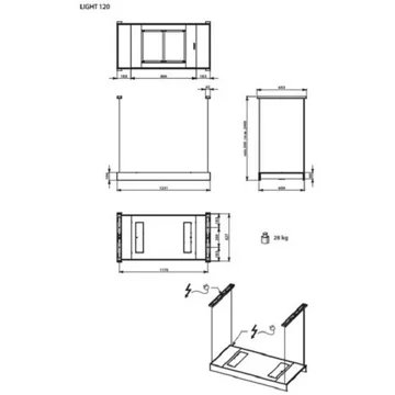- Largeur : 124 cm, pour une zone de cuisson allant jusqu’à 120 cm de largueur.