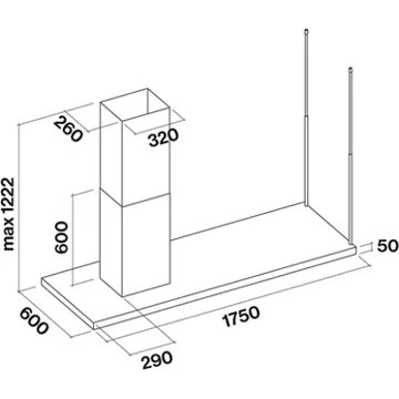 • Largeur : 175 cm, pour une zone de cuisson allant jusqu’à 120 cm de largueur.