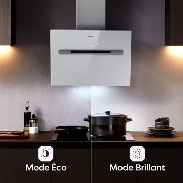 • Type de hotte : décorative murale inclinée, combine style et fonctionnalité. Sa conception permet de mieux gérer l’espace au-dessus de la zone de cuisson. Elle évite de devenir un obstacle dans l’espace de cuisson et n’obstrue pas la vue, rendant plus facile la préparation des plats.
