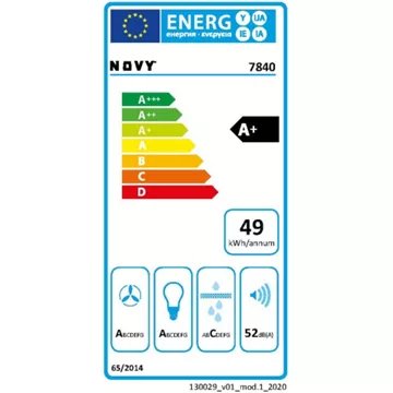 La hotte décorative murale NOVY VISION 7840, avec ses lignes épurées et sa finition noire élégante, s’intègre parfaitement dans les cuisines modernes. Avec une largeur de 120 cm, elle offre un espace de couverture idéal pour les tables de cuisson de grande taille. Cette hotte n’est pas seulement un atout esthétique, elle est également dotée d’une classe d’efficacité énergétique A+, garantissant une consommation énergétique annuelle réduite à seulement 49,3 kWh. L’éclairage LED fonctionnel, d’une consommation de 4 W et d’une température de 2700 K, fournit une lumière douce et agréable, tout en étant économique et durable.