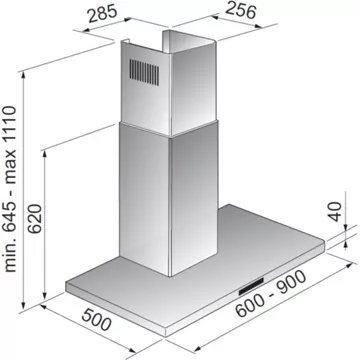 • Largeur : 90 cm, pour une zone de cuisson allant jusqu’à 90 cm de largueur.