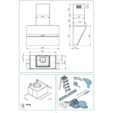 • Largeur : 85 cm, pour une zone de cuisson allant jusqu’à 90 cm de largueur.
