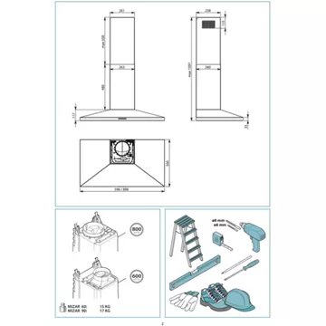 • Largeur : 90 cm, pour une zone de cuisson allant jusqu’à 90 cm de largueur.