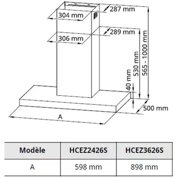• Largeur : 60 cm, pour une zone de cuisson allant jusqu’à 60 cm de largueur.
