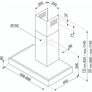 - Largeur : 90 cm, pour une zone de cuisson allant jusqu’à 90 cm de largueur.
