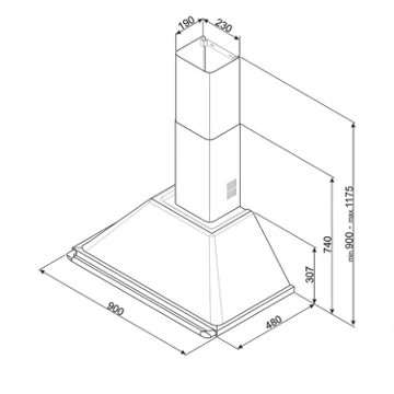 • Largeur : 90 cm, pour une zone de cuisson allant jusqu’à 90 cm de largueur.