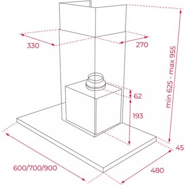 • Débit d’air maxi : 586 – idéal pour une cuisine de 25m².