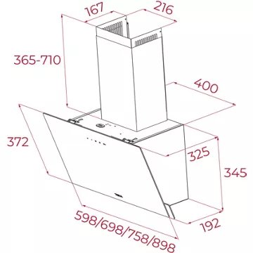 - Largeur : 60 cm, pour une zone de cuisson allant jusqu’à 60 cm de largueur.
