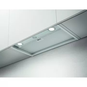 - Type de hotte : encastrable, s’intègre parfaitement dans les armoires, préservant l’esthétique de la cuisine. Elle offre une extraction efficace des fumées et odeurs tout en restant discrète. Son design discret et sa performance font d’elle un choix idéal pour les cuisines modernes soucieuses de leur apparence.