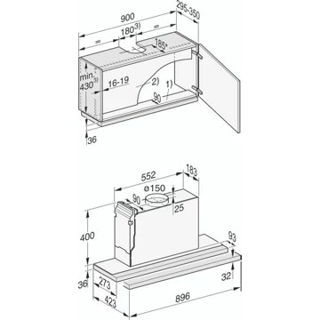 • Largeur : 90 cm, pour une zone de cuisson allant jusqu’à 90 cm de largueur.