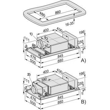 • Type de hotte : : encastrable plafond – évacuation et recyclage