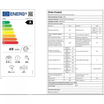 - Consommation d’électricité pour 100 cycles (programme éco) : 49,0 kW