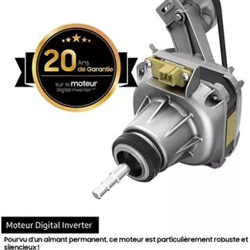 • Type de moteur : induction (avec courroie) faible consommation, silencieux