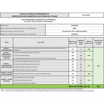• Indice de réparabilité : 8,5 /10
