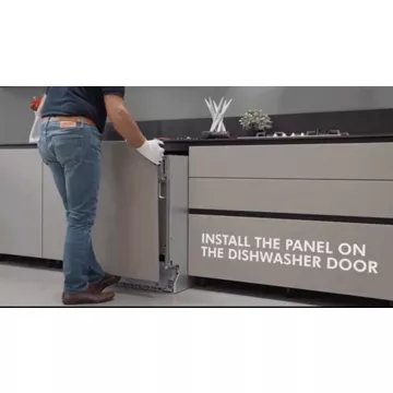 • Compatible plinthe basse : Appelé également porte à glissières ou encore porte coulissante. La façade de la porte est fixé au moyen d’un guide, qui lui permettra de glisser vers le haut lors de l’ouverture du lave-vaisselle afin de ne pas toucher la plinthe. Attention, la porte peut-être fixe chez certaines marques.