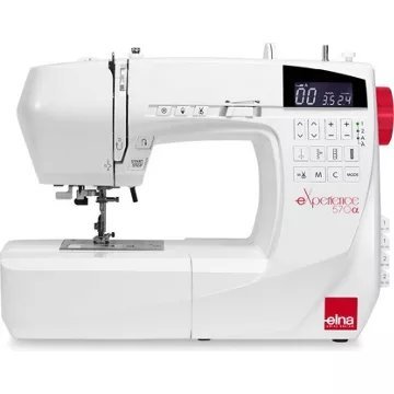 Machine à coudre Elna eXperience 570 Alpha – Garantie 5 ans La machine à coudre Elna eXperience 570 Alpha est une modèle très fonctionnel et facile à prendre en main. Son large espace de travail, et son coupe fil automatique en font une machine à coudre performante, robuste et très douce. Elle est parfaite pour des couturières qui recherchent une machine à coudre toutes options simple et robuste. Machine à coudre électronique, simple d’utilisation et conviviale, d’une qualité de point irréprochable. Elle possède 200 points de couture, 12 boutonnières automatiques, un alphabet de 180 caractères et un coupe fil automatique. Garantie 5 ans. Vidéo d’instruction et notice en Français. Caractéristiques : 200 points de coutures 12 boutonnières automatique Combinaison de points: 50 (mémoires) Coupe fils automatique Alphabet de 180 caractères Largeur maximale de point (mm) : 7 Longueur maximale de point (mm): 5 15 positions d’aiguille Espace de couture: 170 mm Bras libre Type d’écran: LCD Enfile aiguille intégré 7 griffes de transport rétractables Éclairage 1 LED blanche Pression du pied-de-biche réglable Espace de rangement pour les accessoires Table d’extension Start/Stop Point d’arrêt-noeud Position de l’aiguille haute/basse Très bon rapport qualité/prix 7 griffes d entraînement Alphabet de 180 caractères Enfile aiguille automatique Coupe fil automatique Accessoires et pieds inclus Canettes Découd-vite Disques fixe-bobine grand et petit Tige porte bobine supplémentaire Pinceau de nettoyage Assortiment d’aiguilles Tournevis Pédale Vidéo d’instruction Coque de protection rigide Table d’extension Pied standard A Pied satin (F) Pied fermeture éclair (E) Pied ourlet invisible (G) Pied surjet (C) Pied patchwork 1/4 pouce (O) Pied boutonnière automatique (R) avec plaque stabilisatrice Retrouvez tous les accessoires compatibles avec cette machine en cliquant ici Assistance téléphonique, pièces, main-d’œuvre, frais de transport – aller/retour – uniquement pour la France métropolitaine (dont la Corse), la Belgique et le Luxembourg