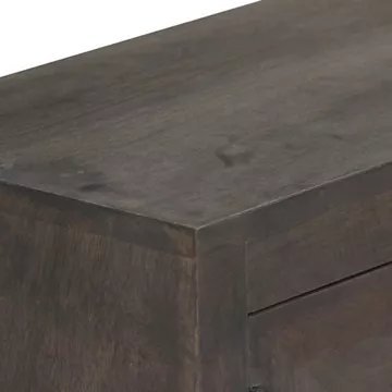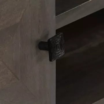 Ce meuble TV en bois massif de manguier avec laquage apportera une touche décorative et pratique à votre décoration.