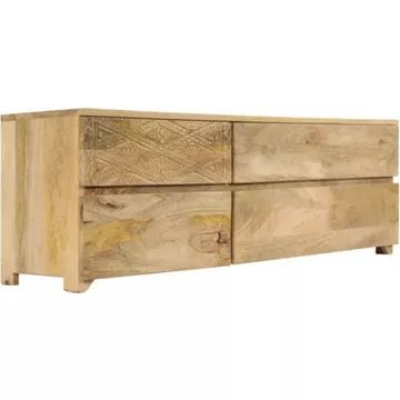 Le meuble TV en bois de manguier massif est extrêmement stable et durable.