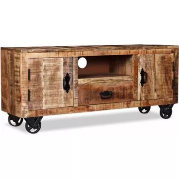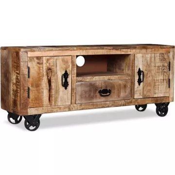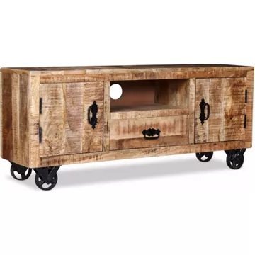 Le meuble TV est fait à la main de bois de manguier brut solide qui est stable, durable et belle, et l’artisanat ajoute à son style rétro spectaculaire.