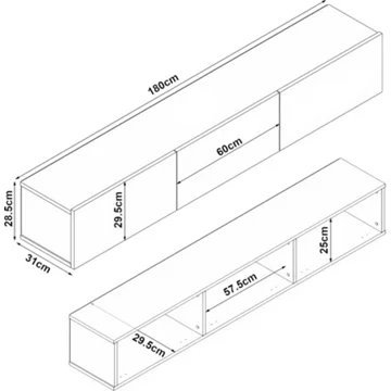 – totales (largeur x profondeur x hauteur) : 180 x 31 x 29,5 cm