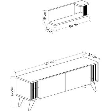 – meuble TV (hauteur x largeur x profondeur) : 42 x 120 x 31 cm