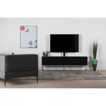 • Avantages : « – Meuble TV avec porte abattante en textile acoustique laissant passer le son et les signaux de vos télécommandes.- Espace pour accueillir une barre de son (option lors du montage).- Colonne TV rotative (à +/-24°) et cache-câble ».