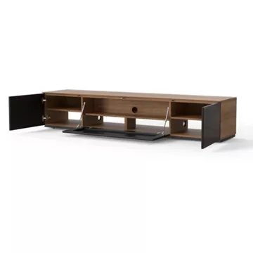 Le Meuble TV SONOROUS STA 200INOAKBLKBS se distingue par son design épuré et contemporain, offrant une touche d’élégance à tout intérieur. Avec ses dimensions généreuses de 200 x 45 x 35 cm, ce meuble TV en MDF à l’aspect bois s’intègre parfaitement dans les espaces de vie modernes. La structure robuste est complétée par des portes latérales en verre trempé noir, qui s’ouvrent sur le côté, et une porte centrale abattante en verre opaque infrarouge, permettant l’utilisation des télécommandes sans nécessité d’ouvrir la porte. La gestion des câbles est simplifiée grâce aux cloisons intérieures équipées de trous pour un passage discret et organisé.