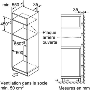 - Hauteur niche d’encastrement : Micro ondes hauteur 45 cm