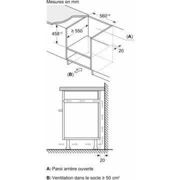 - Dimensions d’encastrement l x h x p : 56 x 45 x 55 cm