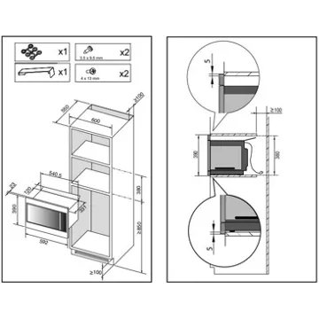 - Hauteur niche d’encastrement : Micro ondes hauteur 38 cm