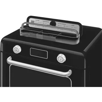 Le Mini four SMEG COF01BLEU se distingue par son esthétique inspirée des années 50, offrant une touche d’élégance intemporelle à votre cuisine. Doté de touches grises et d’un levier en plastique noir, ce modèle arbore un corps noir avec une finition brillante et une porte transparente à la face mate, encadrée de plastique poli. L’intérieur en inox garantit une durabilité et une facilité de nettoyage exceptionnelles. Avec son éclairage halogène et sa porte abattante équipée de trois vitres, ce mini four combine avec brio le charme du passé et les avancées technologiques actuelles.