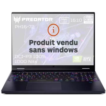 • Référence constructeur : Predator Helios 16 PH16-72-98Z7 Sans OS
