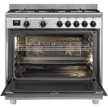 - Mode de cuisson : chaleur tournante pulsée, le four est équipé d’une hélice et d’une résistance circulaire situées sur la paroi arrière du four, pour une cuisson simultanée de différents plats sur plusieurs niveaux.