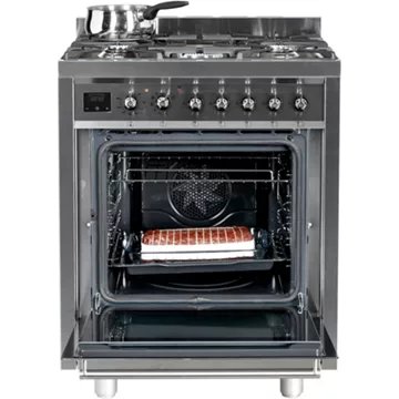 Si vous êtes en quête d’un appareil multitâche, la Cuisinière SMEG C7GPX9 vous ravira. Elle vous offrira la possibilité de cuire au gaz via son plan de cuisson ou à l’électricité grâce au four principal. Celui-ci fonctionne selon une chaleur tournante qui garantit une cuisson uniforme de vos plats.