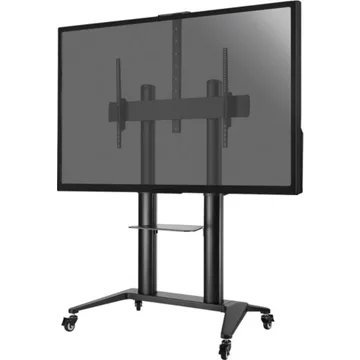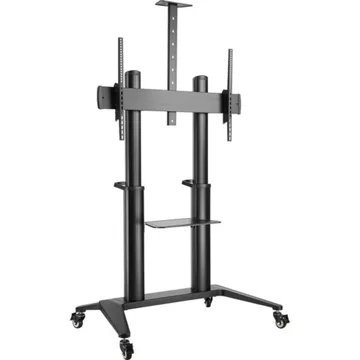 Le support sur pied 030-1205 est conçu pour accueillir des écrans de 70 à 120″ répondant aux standards VESA (200×200 min, 1000×600 max), jusqu’à 140 kg. Ce support professionnel est composé d’une base de sol équipée de roulettes pour une parfaite mobilité, et de deux mâts robustes le long desquels vous pouvez régler facilement le niveau de votre écran de 125 à 160 cm (centre écran). Le support 030-1205 est très fonctionnel, il permet en effet d’incliner votre écran (+5/-10°) en toute facilité pour s’adapter à tous vos besoins et vous procurer le meilleur confort de vision. Il dispose également de deux étagères amovibles et réglables en hauteur, la supérieure, pour accueillir une caméra de visioconférence, la médiane, vos accessoires audiovisuels. Le support de sol KIMEX 030-1205 est donc une solution idéale pour une utilisation active en milieu professionnel dans des bureaux pour de la visioconférence ou pour équiper un salon d’exposition.