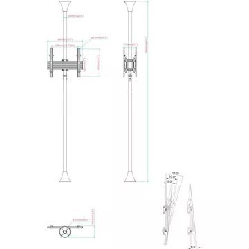 Le support sol-plafond KIMEX 032-2012K1 est conçu pour accueillir deux écrans de télévision 32″-75″ répondant aux standards VESA (100x100mm min, 400x400mm max), jusqu’à 30 kg. Ingénieux, ce support est idéal lorsque vous n’avez pas la possibilité de positionner vos écrans au mur, il repose en effet sur deux colonnes à fixer au sol et au plafond d’une hauteur respective de 150 et de 80 cm, et coupables pour s’adapter à votre besoin (gabarit de perçage en option, ref 032-1014). Les deux fixations, robustes et fonctionnelles, vous permettent de positionner vos écrans en hauteur au niveau où vous le désirez, de les incliner (+6°/-15°), et de les orienter de gauche à droite à 360° pour vous procurer le meilleur angle de vision. Conçu dans une optique esthétique, il dispose enfin de passe-câbles qui vous garantissent un rendu parfait.