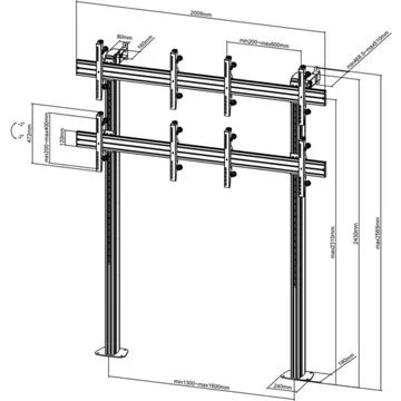 Support sur pied pour 4 écrans TV 45″-55″, à visser, Hauteur 240 cm.