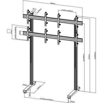 Distance entre chaque pied réglable de 130 à 160 cm, pour installer des écrans de taille différente et aussi dans le sens paysage ou portrait, en fonction de votre besoin.