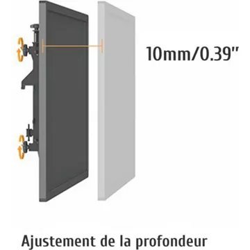 Ecrans réglables de haut en bas, de gauche à droite, en avant en arrière et inclinables, grâce à un système efficace à molettes, pour constituer un mur d’images parfait et ainsi s’adapter à tous vos besoins.