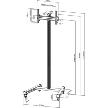 Support sur roulettes pour écran TV 32″ – 75″ Hauteur 240cm, Fonction inclinable.